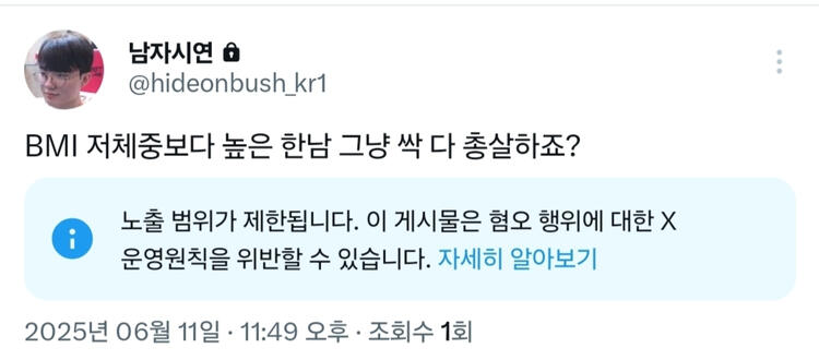 남성 혐오 트윗 다수